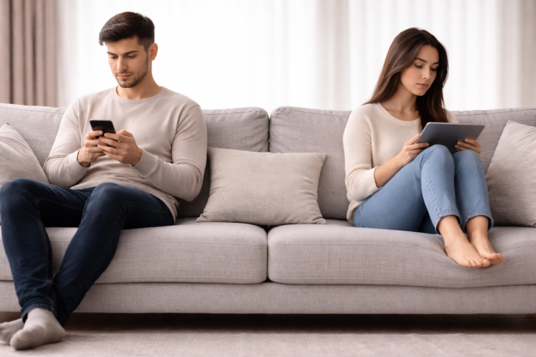 You are still speaking, but you are no longer connecting. Sometimes you are in the same room, even on the same sofa, communicating through devices instead of with each other.